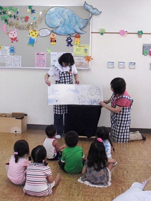 お絵かきが終わったあと、小学生のお姉さんたちは