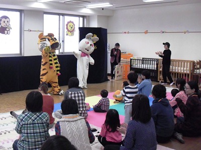 みんなの大きな声にあわせて、とらごろうくんとうさこちゃんの登場です。