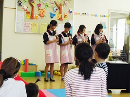 メダル作りは、幼児教育学科のお姉さんたちもお手伝いしてくれたんですよ!