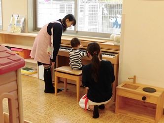 お母さんに優しく見守られて、子どもたちは自由にアレンジしていきます。