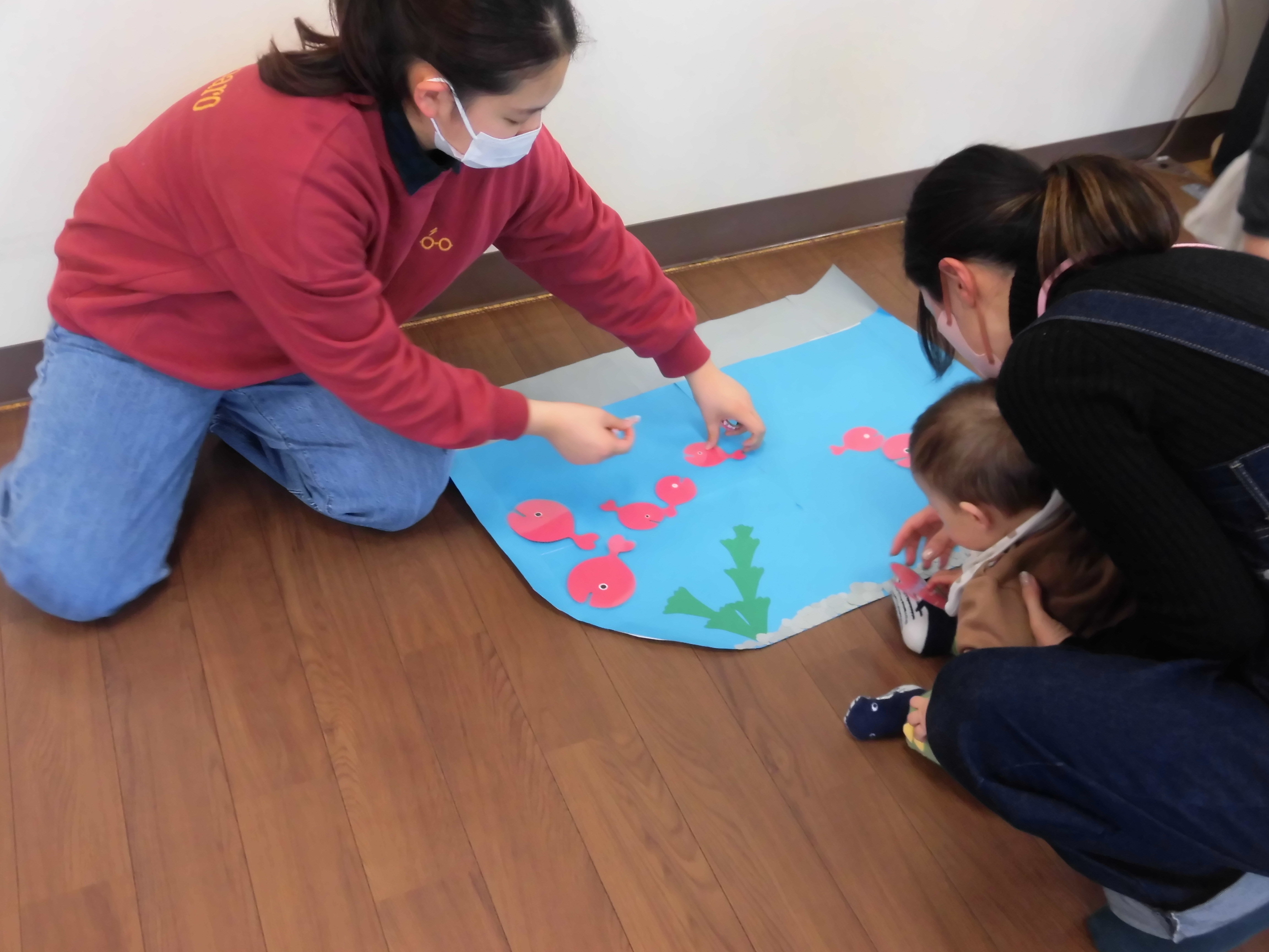 読み聞かせの後に、お部屋の中にいるきんぎょさんたちをおうちに返してあげました。