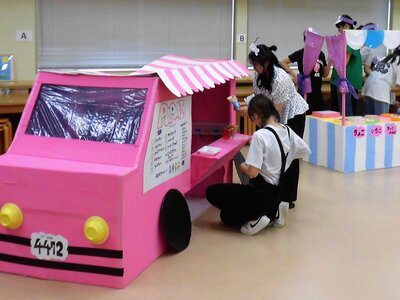幼児教育学科のお姉さんたちが、ごっこ遊びに招待してくれました。
