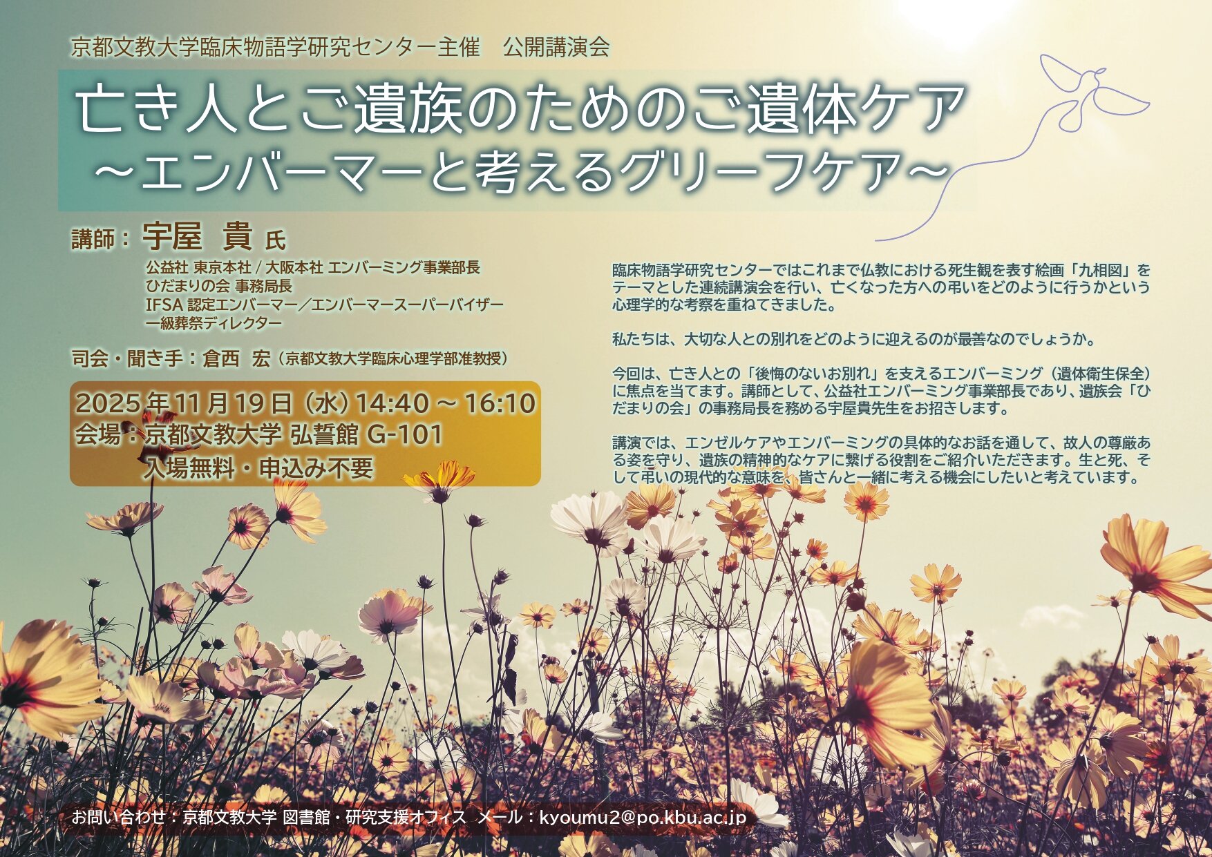 ● 【行事案内】2025/11/19開催 「亡き人とご遺族のためのご遺体ケア ~エンバーマーと考えるグリーフケア~」
