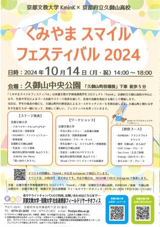 内 容:京都文教大学地域連携学生プロジェクト「KminK」が主催し、京都府立久御山高校、久御山町のまちづくり団体「KUMIDAN」との共催で行います。
