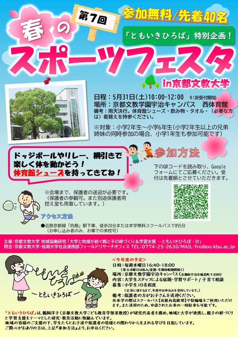 イベント【参加者募集】小学生対象!5/31「第7回春のスポーツフェスタ in 京都文教大学」の開催