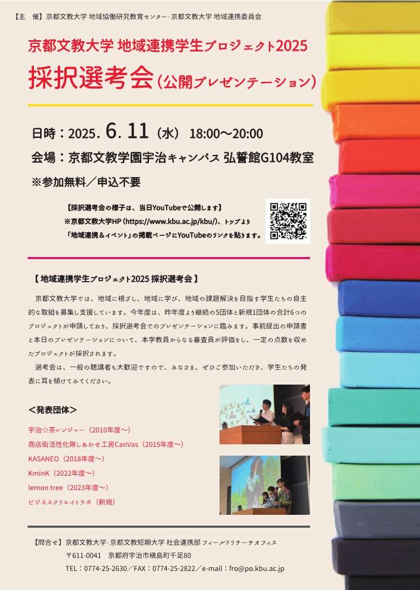 【参加募集】京都文教大学地域連携学生プロジェクト2025採択選考会(公開プレゼンテーション)の開催について
