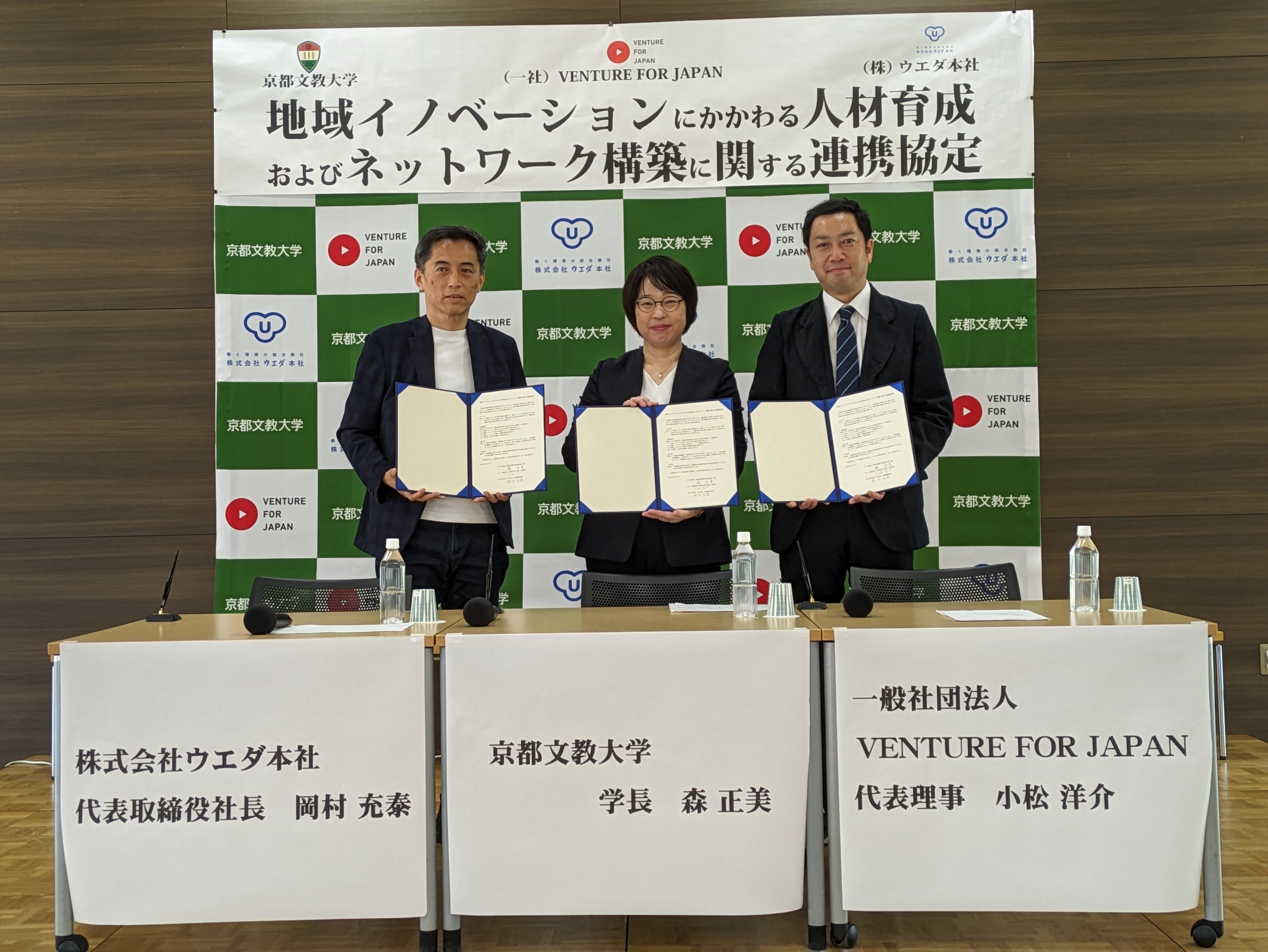 その他【報告】京都文教大学×(一社)VENTURE FOR JAPAN×(株)ウエダ本社 3者連携協定の締結式&トークライブ(鼎談)を開催しました。